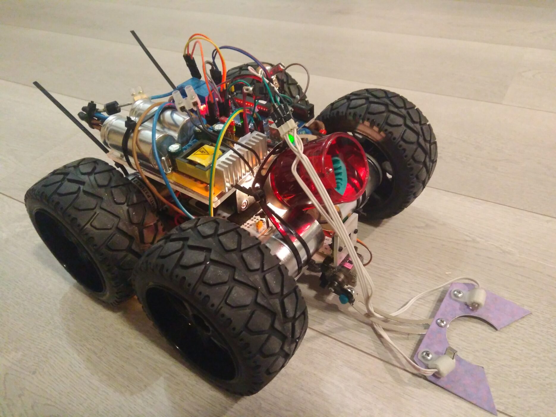 We designed a robot that can play fetch by itself. The robot should be able to autonomously search for a ball in a stable environment, pick it up, throw it away and repeat. Fetch Bot is an extended Monsterborg equipped with a pick-up mechanism, shooting mechanism and ball tracking and recognition software. Documentation on research and prototyping can be found here.